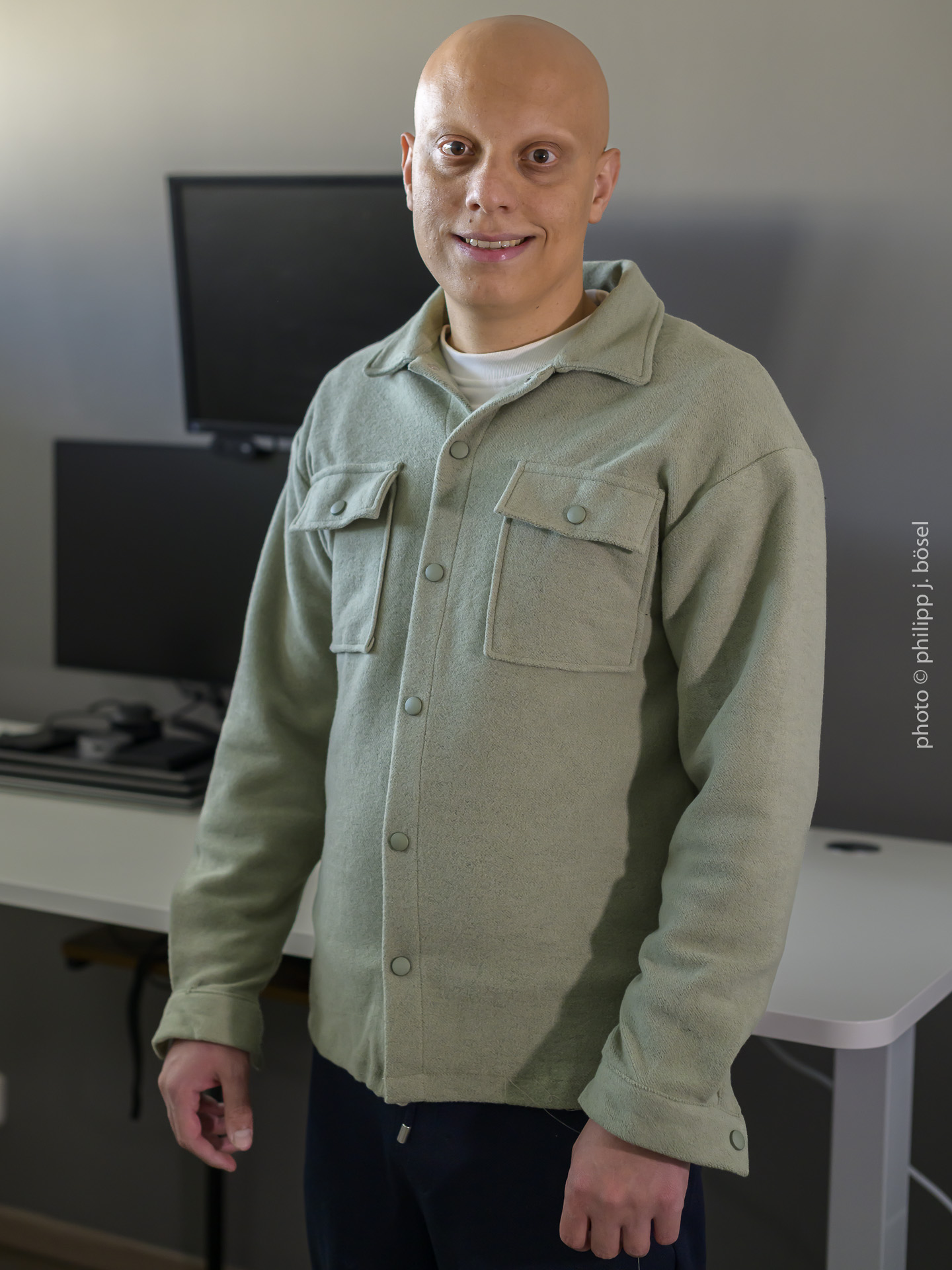 zeigt 21 Porträts von Menschen, die 2015 nach Deutschland geflüchtet und heute mit ihren Berufen fest in unserer Gesellschaft verwurzelt sind. Anders als in meinen sonstigen schwarz-weißen Porträts habe ich mich hier bewusst für die Farbfotografie entschieden – als Symbol für die Vielfalt und Buntheit unserer Gesellschaft. Die Bilder erzählen von Integration, Stärke und dem Ankommen in einem neuen Zuhause.